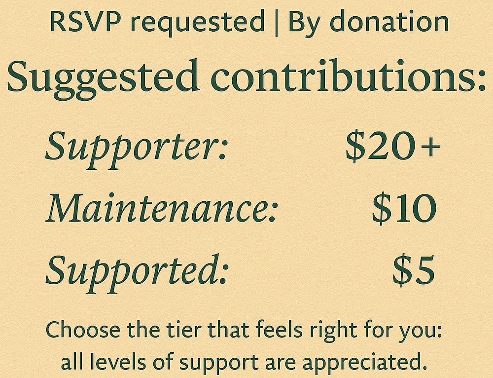 🫶 Potluck begins at 6:30 pm. Please bring a healthy food contribution to share.