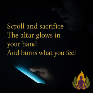 And the most sacred part of us – our ability to feel deeply and act with heart – gets cremated in the glow of the screen.